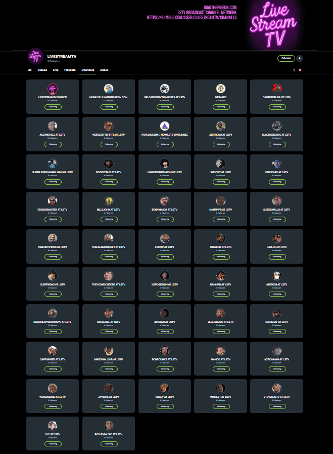 This archive post was published on Mar.16.2025. At that time we only had 20 channels on the network. Now there are 47 channels, and unfortunately, soon to be 46, per request of the streamer.