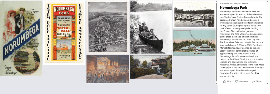 Norumbega park at the time must have really been where it’s at. I wonder why it is gone and how it changed hands to become a hotel. If it was popular and very busy, as it seemed to be at the time, then what happened!! I’ll have to research this wan, here…..