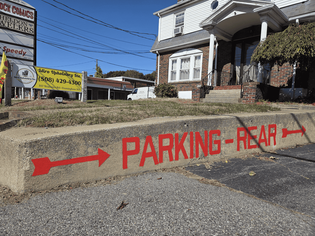 In this instance, the paint refresh seems to have also brought forth a new business name and phone number too! The original business name in the first photo is Design Upholstery Inc. and now on the sign it reads Miro Upholstery Inc. so this could indicate new ownership or just a company rebrand. The phone line seems to have also changed, which was previously ending in 0099 and now it is ending with 4300. This is also on the painter’s shirt, so it is extra special to me that a contractor or painting company was not hired to do this, it is real work done by the small business owners and workers. Not only that, but the job was done right. The paint looks great. Definitely a successful paint refresh here! I love my city!